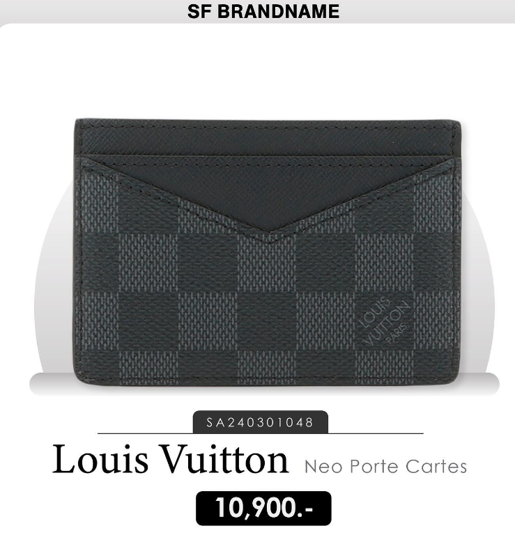 มาพร้อมกับขนาด 11 x 7 x 0.6 เซนติเมตร ภายในบุด้วยหนังลูกวัวครอสเกรนช่องใส่บัตร 5 ช่อง ราคาจำหน่ายในเว๊ปไซต์ของ Louis Vuitton อยู่ที่ 12,500 บาท แต่คุณสามารถเป็นเจ้าของกระเป๋าใบนี้จาก SF Brandname ได้ในราคา 10,900 บาท