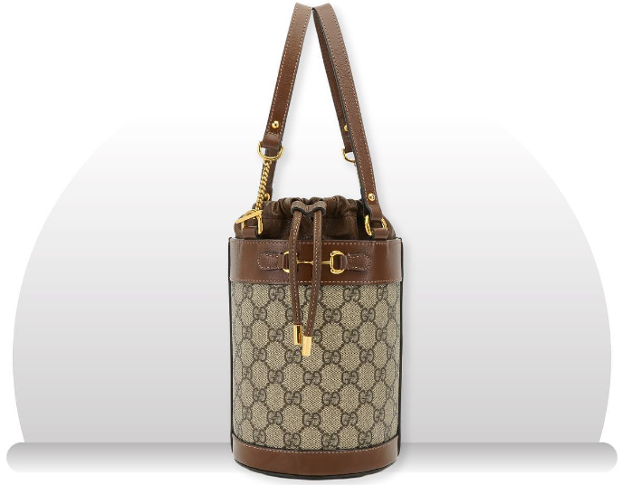 กลุ่มผลิตภัณฑ์ Gucci Horsebit 1955 นำเสนอการออกแบบกระเป๋าทรงถังทรงกลมกึ่งแข็ง พร้อมการปิดด้วยเชือกรูดแบบแยกส่วนด้านบนเป็นผ้าใบ GG Supreme และขอบหนังสีน้ำตาล อุปกรณ์เสริมได้รับแรงบันดาลใจจากดีไซน์ที่เก่าแก่ โดยผสมผสานรายละเอียดดั้งเดิมเข้ากับจิตวิญญาณสมัยใหม่ โดยเน้นที่ Horsebit ส่วนหนึ่งของรหัสพันธุกรรมของ Gucci คือ การออกแบบวงแหวนคู่และแถบที่ได้รับการกำหนดให้เป็นหนึ่งในองค์ประกอบที่โดดเด่นที่สุดในบรรดาสัญลักษณ์ประจำบ้านที่ยืมมาจากโลกแห่งการขี่ม้า